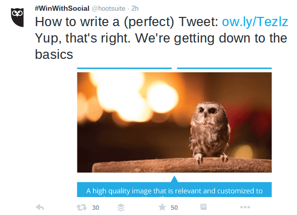 Back in the day you didn’t even have this option but now it’s rare to see a tweet without some sort of media included. In general, we’ve been told over and over how images are sure to drive greater engagement. However, your following might react differently to media than other audiences so make sure you test. So try text only messages and test them with different types of content. Then go back and add an image and repeat the process and see what you find.
