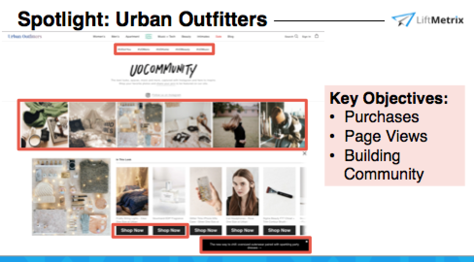 Urban Outfitters lack of a like2b.uy page eliminates a middleman and drives viewers straight to their Urban Outfitters Community webpage. Here, viewers can access details about products shared on their community and Instagram page. This page is designed to drive page views, purchases and brand loyalty.