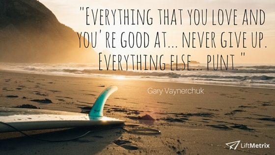"Everything that you love and you're good at... never give up. Everything else... punt." @garyvee