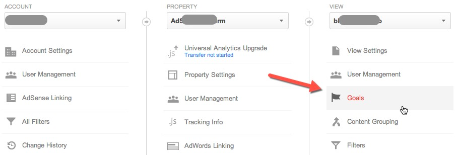 To create a goal in Google Analytics, go the Admin view of your account and choose “Goals”