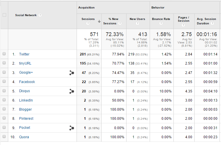 Many marketers simply create an update on Facebook or Twitter by copying pasting the URL that they want to share. Then, they look at Google Analytics to see where the traffic for that post came from. They’ll see something like this: